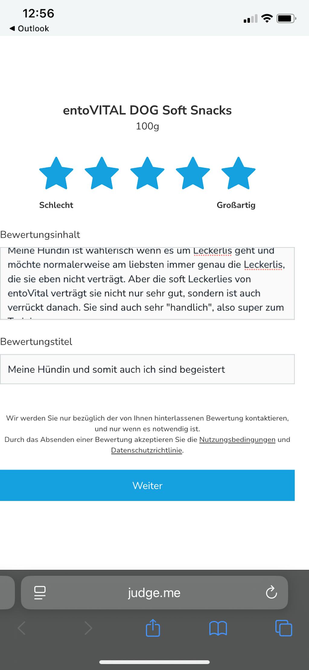 Meine Hündin ist wählerisch wenn es um Leckerlis geht und möchte normalerweise am liebsten immer genau die Leckerlis, die sie eben nicht verträgt. Aber die soft Leckerlies von entoVital verträgt sie nicht nur sehr gut, sondern ist auch verrückt danach. Sie sind auch sehr "handlich", also super zum Trainieren